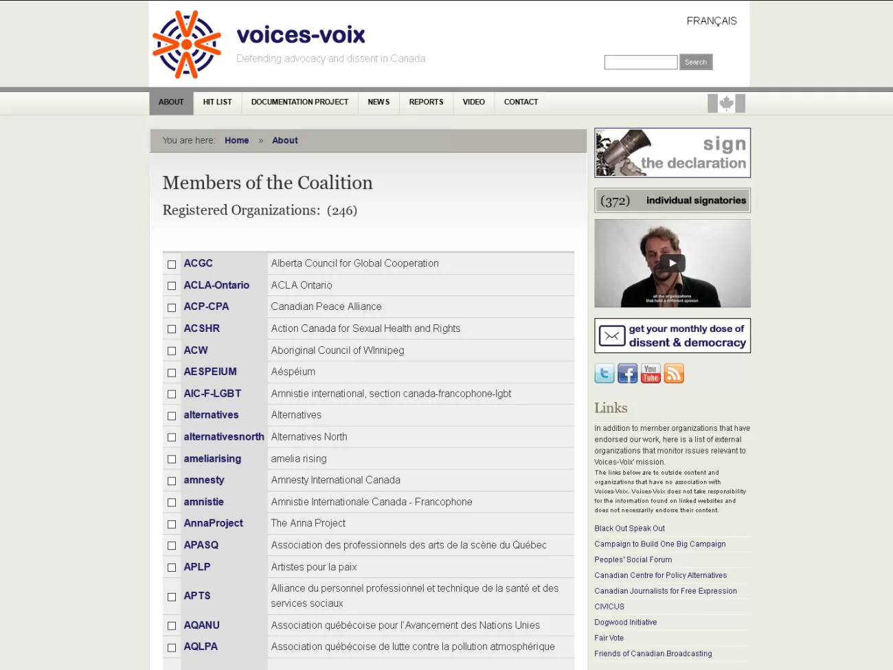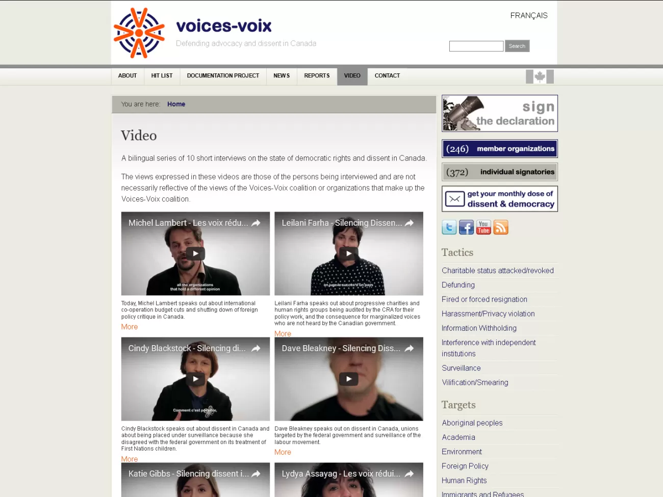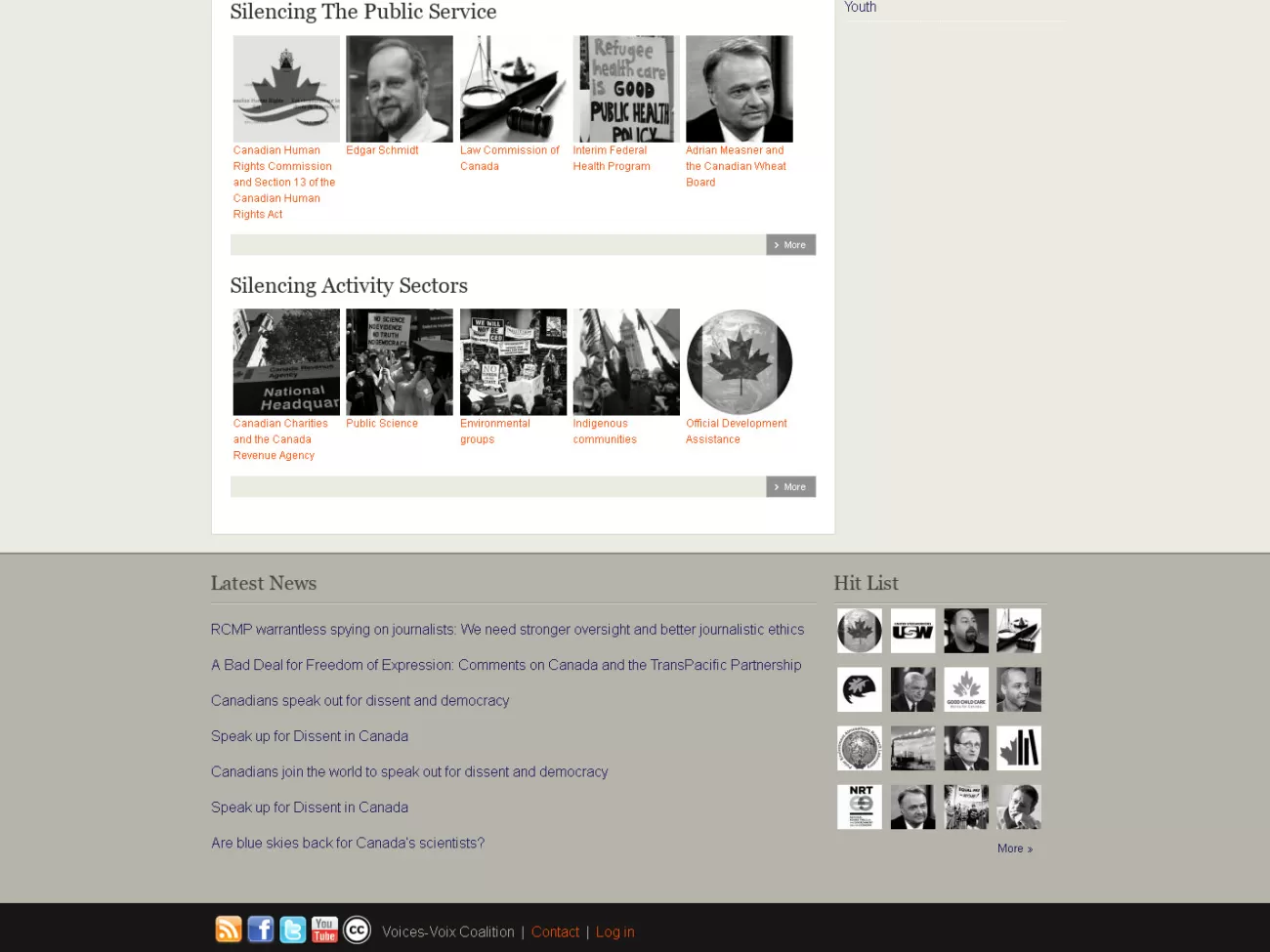Conception d'une plateforme de cyberactivisme ayant pour thème la liberté d'expression, la transparence et la démocratie au Canada. Le site incluait un formulaire pour écrire au chefs de partis politiques, une pétition électronique, une section vidéo, ainsi qu'une banque de données classée par individus et organisations. Le travail a été effectué dans le cadre d'un partenariat entre Amnistie Internationale et Alternatives, en leur rôle respectif de trésorier et responsable des communications de la coalition.